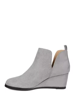 Step into a beautiful new design with the Arkie wedge by Journee Collection. This classic shoe features a delicate ankle strap with detailed side cut-outs while the pointed toe finishes off the design.