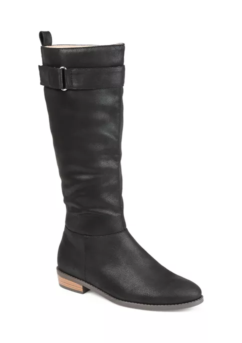 A classic boot that matches everything, the Lelanni by Journee Collection. This extra-wide calf boot features a strap accent at the shaft and supple vegan leather uppers. A 4 mm Tru Comfort Foam™ footbed offers the perfect amount of cushion to your step, and a smooth inside zipper entry finishes the look.