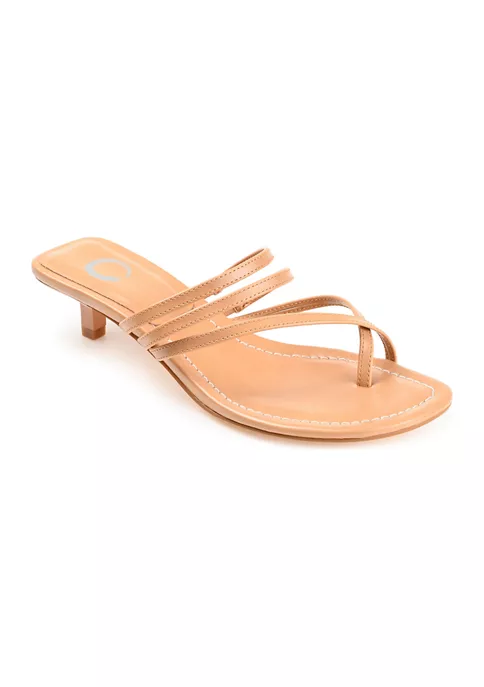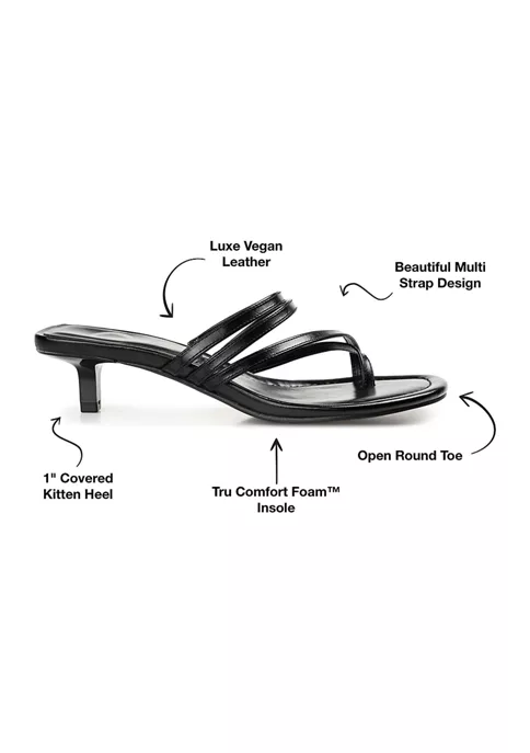A heeled sandal you can wear with party and everyday looks alike, the Lettie by Journee Collection. This multi-strap style features vegan leather crisscross straps that wrap around the toe. A 4 mm Tru Comfort Foam™ footbed and kitten heel complete the design for walkability.