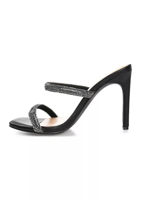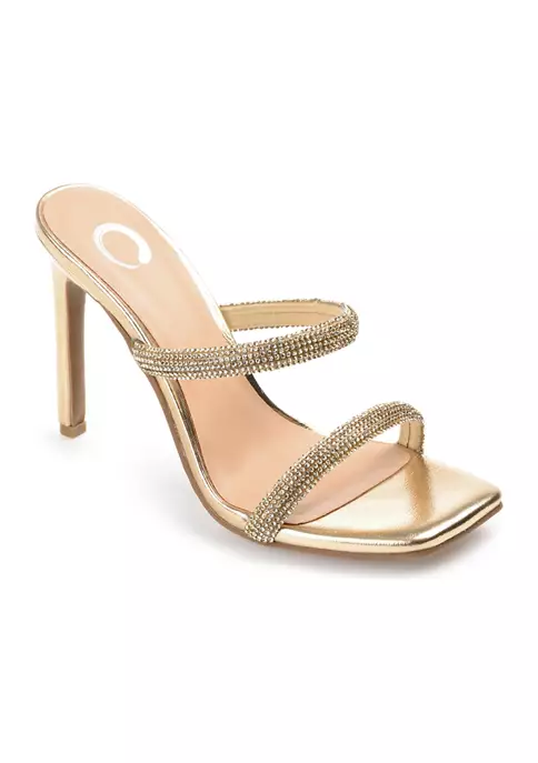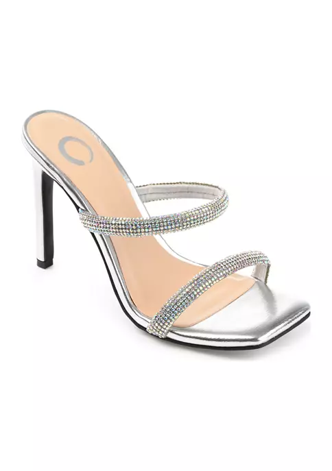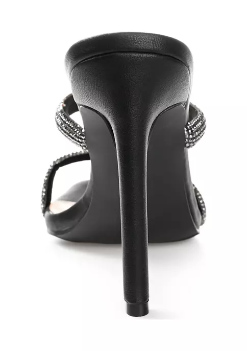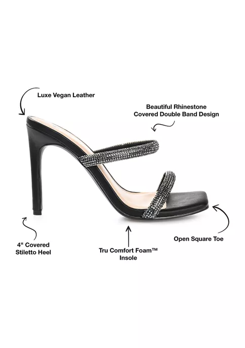 The Reena by Journee Collection has a striking appearance. For a fresh look, the man-made straps on this airy heel are embellished with rhinestones throughout. The design is completed with a stiletto heel and 4 mm Tru Comfort Foam™ insole for increased comfort.