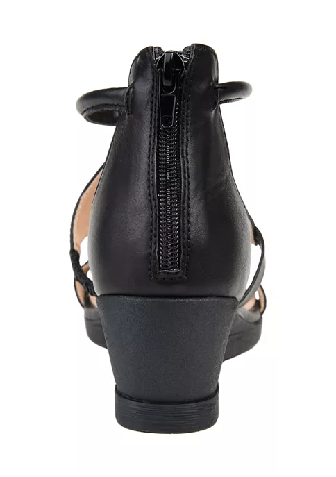 The perfect new addition to your summer closet, the Trayle by Journee Collection. This wide-width caged sandal features soft vegan leather grounded by a rubber wedge heel and padded insole. A back zipper entry finishes the look, so they are easy to slip on.